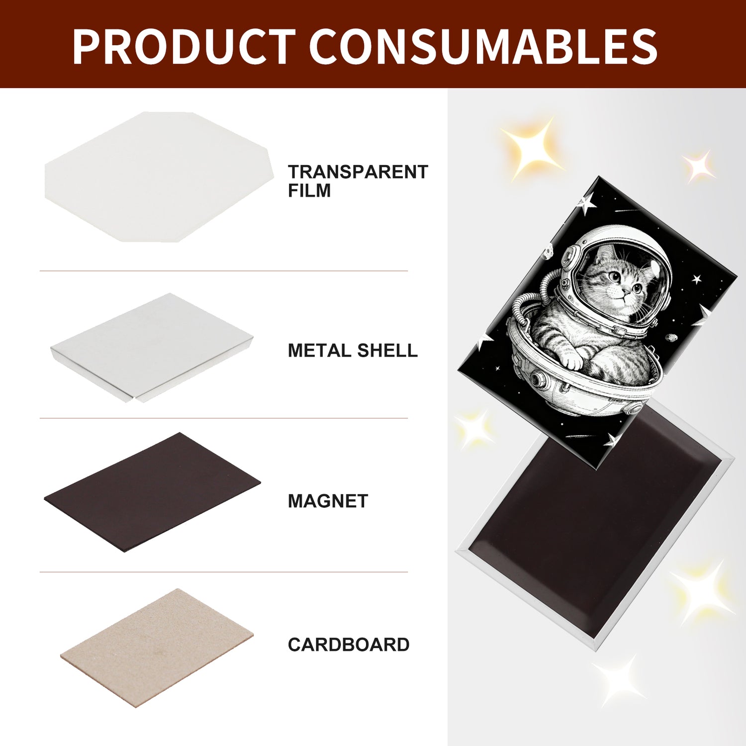 - Supplies to create 100 magnets (100 of each component)
